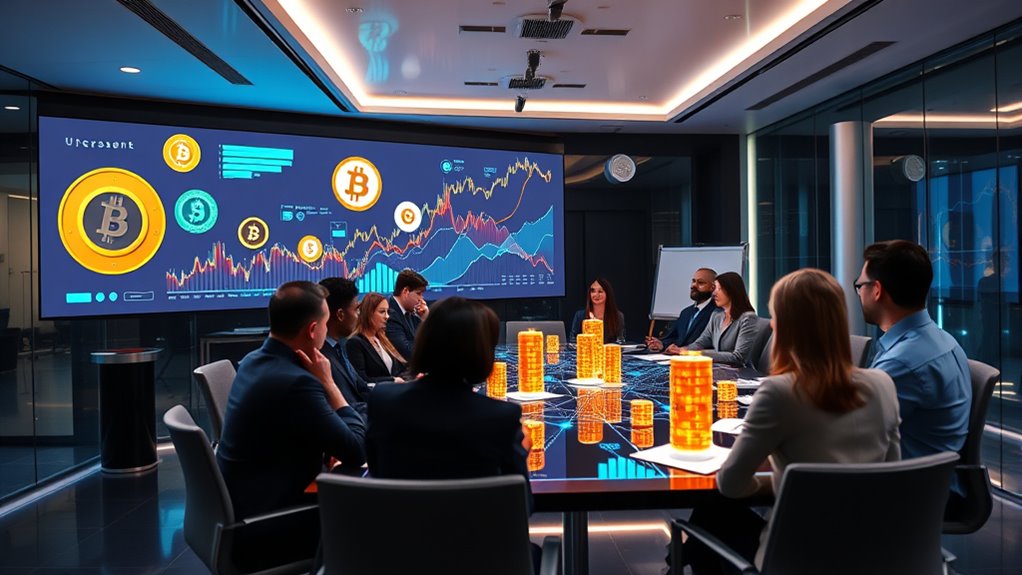 Regulatory frameworks are increasingly influencing how companies incorporate cryptocurrencies into their strategies. You need to stay compliant while leveraging digital assets for growth. Governments worldwide are establishing clearer rules for stablecoins, digital asset custody, and tokenization, shaping corporate decision-making. The EU’s MiCA regulation, for example, authorizes licensed stablecoins, encouraging European firms to expand crypto activities confidently. In the US, proposed legislation like the GENIUS Act aims to improve stablecoin oversight, fostering a more stable environment for institutional involvement. These evolving policies reduce uncertainty, enabling companies to plan long-term crypto adoption. As a result, firms are more willing to integrate digital assets into treasury management, payments, and asset tokenization, knowing regulatory support and clarity are strengthening. Additionally, the increasing focus on cybersecurity measures emphasizes the importance of safeguarding digital assets against evolving threats. Your strategy must adapt to these frameworks to capitalize on the growing crypto ecosystem.
