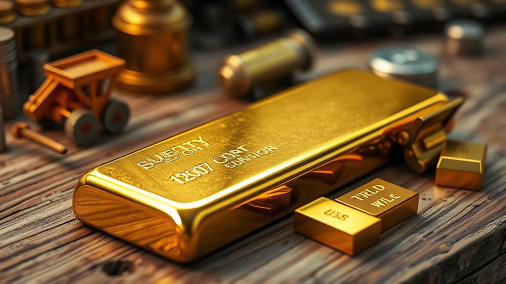 By blending ultra-safe bullion with high-beta miners, you’re crafting a gold barbell—a sturdy core with dynamic weights on each end. This strategy balances stability and growth, like a tightrope walker maintaining equilibrium on a thin wire. Keep your eyes on both ends, and you’ll navigate market swings with confidence. Together, these assets form a resilient, flexible structure, allowing you to ride out volatility while still reaching for those golden gains.
