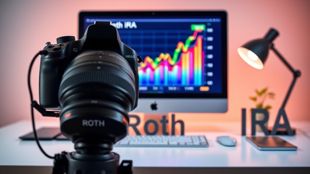 A Roth IRA is perfect for high-growth assets like crypto because it offers tax-free growth and withdrawals, maximizing your earnings over time. You can grow your investments without paying capital gains taxes inside the account, allowing profits to compound faster. Plus, you avoid required minimum distributions, keeping your assets invested long-term. By understanding how to diversify and manage risks, you’ll learn ways to optimize your crypto investments within a Roth IRA.
