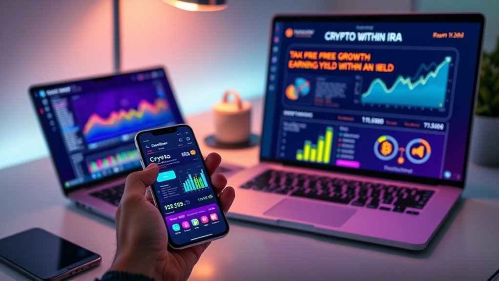 To maximize your tax-deferred or tax-free growth, you need to leverage the unique advantages of different IRA types, like traditional or Roth accounts. Steering through regulatory limits is essential, especially since custodians restrict investments to approved assets and certain yield strategies. By understanding these rules and choosing the right approach, you can optimize your crypto earnings for long-term growth. Additionally, understanding education resources on crypto investment strategies can help you make more informed decisions.