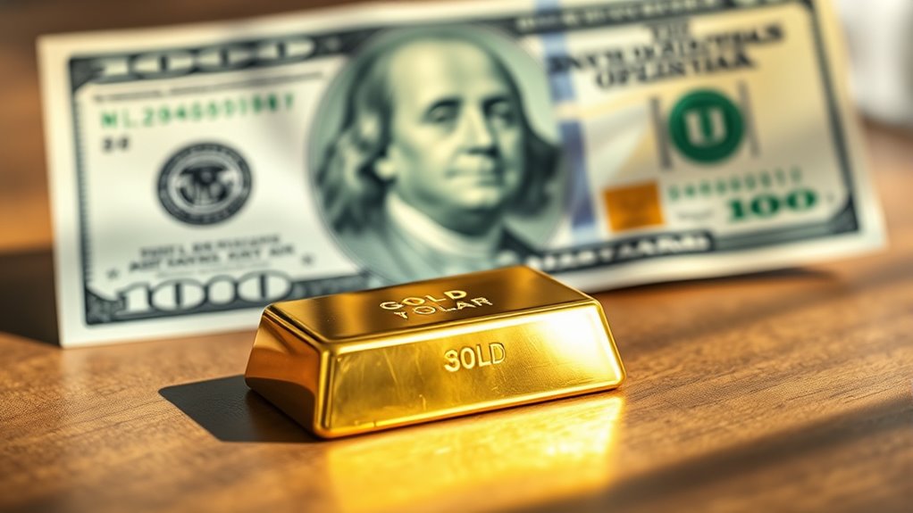 As you watch the dollar’s strength ebb and flow like tides, remember how it pulls gold’s shimmer along with it. When the dollar rises, gold’s gleam dims, hiding beneath the shadow of economic shifts. But when the dollar softens, gold’s radiant glow reemerges, inviting you to seize the moment. Stay tuned to this dance—it’s a rhythm that can turn your investments into a shining beacon or a fleeting shadow in the vast financial sky.