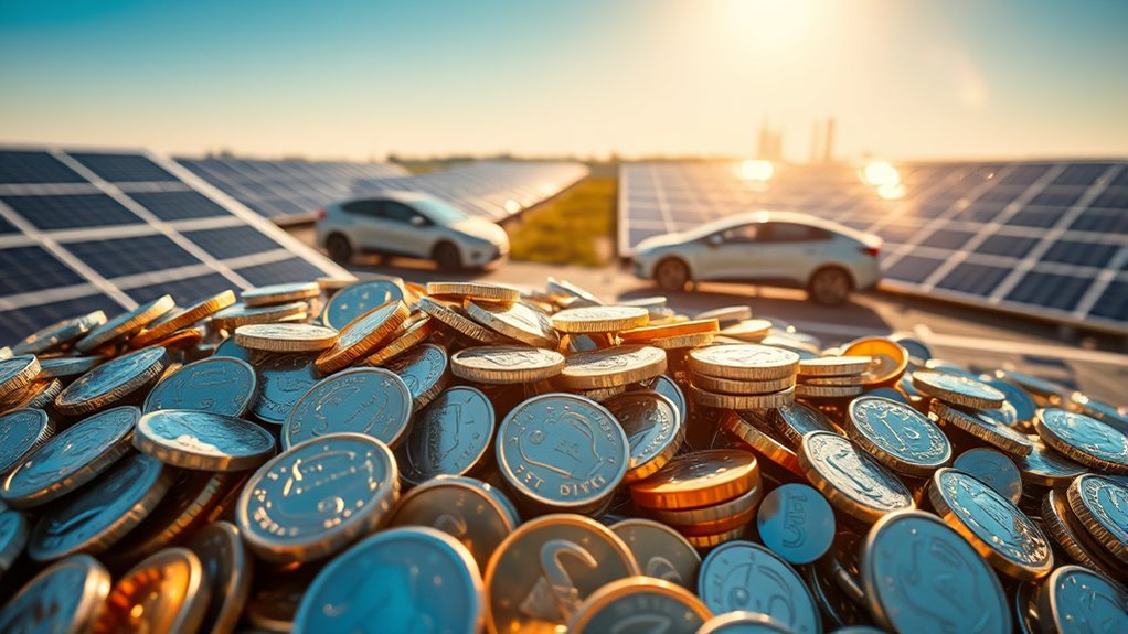 Precious metals like silver, platinum, and palladium are essential for the green energy shift, powering solar panels and electric vehicle components. Silver’s high conductivity improves solar efficiency and EV performance, but supply chain constraints and geopolitical risks threaten their availability. Policies and innovations aim to boost recycling and responsible sourcing. Understanding these dynamics will help you grasp how critical metals shape the future of sustainable energy technologies. Keep exploring to learn more about this evolving landscape.