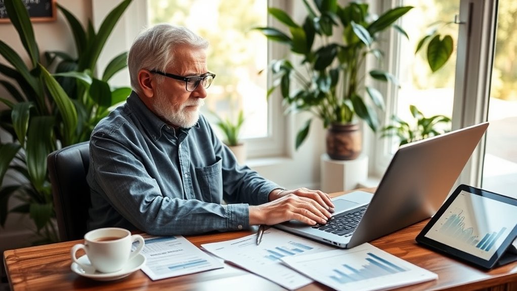 When working part-time in retirement, you should focus on investment diversification to manage risk and maximize returns. Consider adjusting your estate planning to reflect your new income and goals. Keep your portfolio balanced across stocks, bonds, and other assets, and regularly review it to adapt to market changes. This approach helps protect your savings while providing flexibility, ensuring your investments align with your evolving retirement needs.