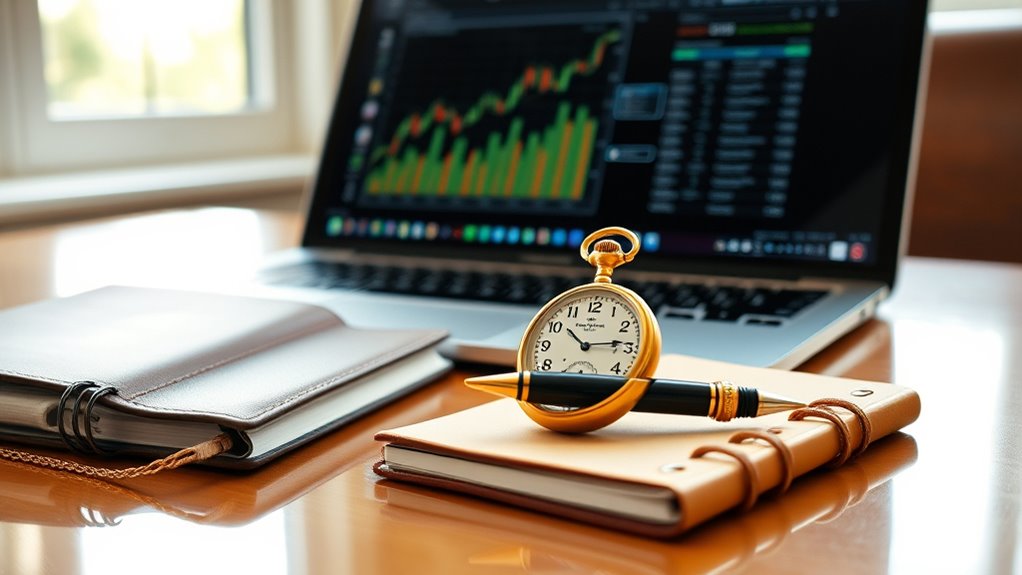 To minimize the tax hit when converting your traditional gold IRA to a Roth, choose years when your income is low, such as early retirement or after a major sale, to keep you in a lower tax bracket. Avoid converting during high-income years or when market values spike. Spreading out conversions over multiple years can also help reduce the immediate tax impact. If you want to learn more about timing strategies, keep exploring the details below.