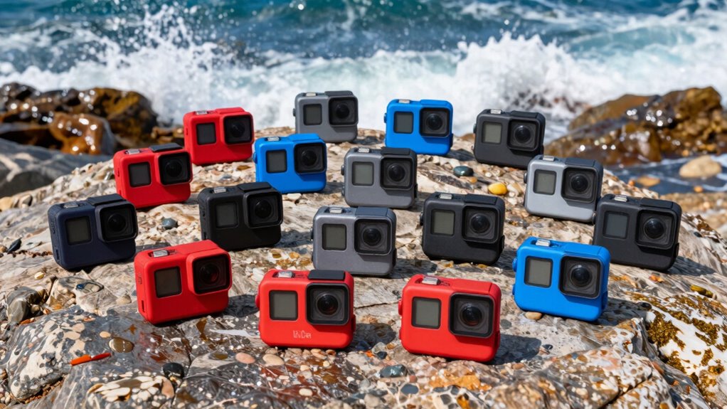 If you’re looking for the best waterproof action cameras for travel in 2026, I’ve got you covered. From high-resolution options like GoPro Hero and DJI Osmo to innovative 360-degree cameras such as Insta360 X3 and Max2, these models excel in durability, stabilization, and ease of use. They’re perfect for outdoor adventures, water sports, or capturing stunning footage on the go. Keep exploring, and I’ll show you the top choices that meet all your adventure needs.