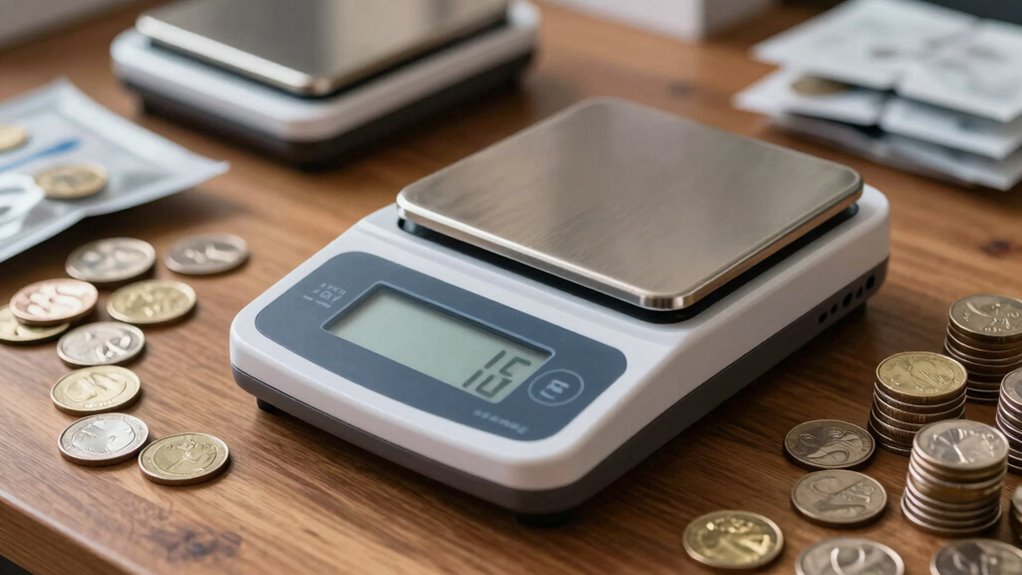Remember, you get what you pay for, so choose a scale that fits your needs and budget. Whether you’re handling small batches or bulk coins, the right scale can save you time and improve accuracy. Take your time to weigh options like capacity, connectivity, and durability. After all, a penny saved is a penny earned—invest in a quality coin counting scale today and streamline your workflow effortlessly.