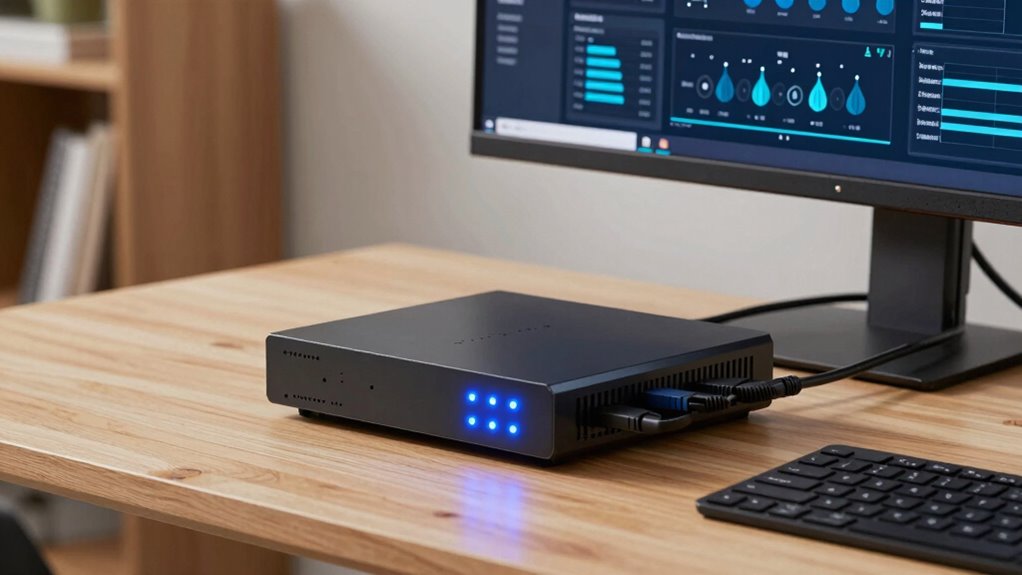 Firmware updates for home office firewall appliances can be either automatic or manual, depending on the device and settings. I prefer devices that offer automatic updates, as they keep security features current without me having to intervene. However, some appliances require manual updates, which means I need to check for firmware releases regularly. It’s vital to review the device’s update options to guarantee your network stays protected effortlessly.