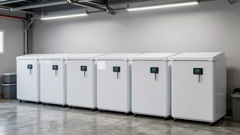 If you’re looking for the 15 best large capacity garage freezer chests for 2026, I’ve got you covered. I’ve compiled a list of top models like the Kenmore 14.6 cu ft, BLACK+DECKER 16.2 cu ft, and Frigidaire 10 cu ft, all designed for durability and efficiency in garage conditions. These freezers feature adjustable thermostats, ample storage, and rugged builds that withstand outdoor environments. Keep going, and you’ll find all the details to choose the perfect freezer for your needs.
