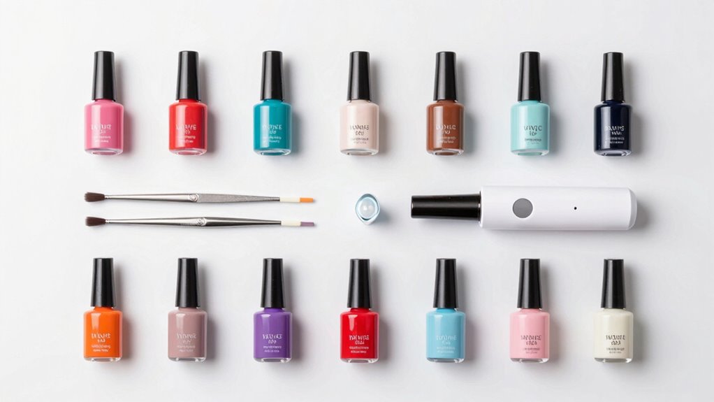 Choosing a complete gel nail kit is essential for a smooth and successful manicure experience, especially for beginners. You want all the necessary tools like a base coat, top coat, curing lamp, nail file, and applicators included so you don’t have to hunt for extra items. Check that the LED or UV lamp offers adjustable curing times and enough power to handle different gel formulas. A variety of gel polish shades can help you experiment with styles and colors for various occasions. Also, look for kits that include nail prep accessories, brushes, and removal tools to make the process seamless. Finally, clear instructions or tutorials are invaluable, guiding you step-by-step and ensuring safe, correct application as you learn the craft.
