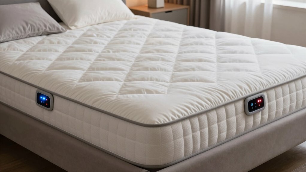 Heating elements in heated mattress pads usually last around 5 to 10 years, depending on usage and quality. I’ve found that well-made pads with proper care tend to last closer to a decade. To extend their lifespan, I avoid folding or pinching the cords and follow the manufacturer’s cleaning instructions. Regularly inspecting the wiring for damage also helps guarantee safety and prolongs the life of the heating elements.