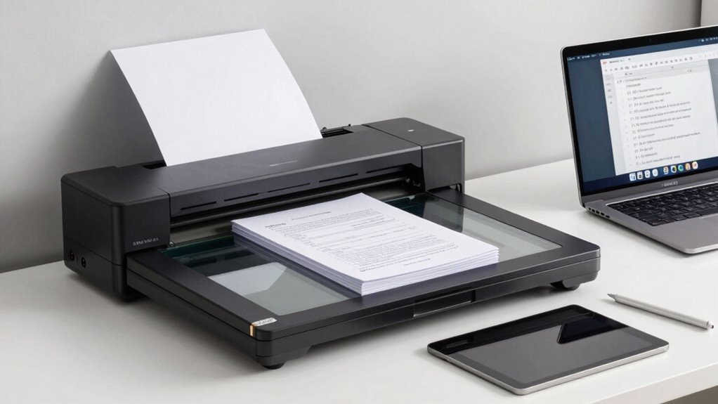 While choosing the best OCR scanner can feel overwhelming, remember it’s about balancing quality with convenience. Whether you prefer a compact mobile device or a robust duplex scanner, each option offers unique benefits. It’s like comparing a quick, portable coffee to a full-bodied brew—both satisfy, but in different ways. Ultimately, finding the right scanner means blending your needs with your workflow, turning cluttered pages into searchable PDFs effortlessly.