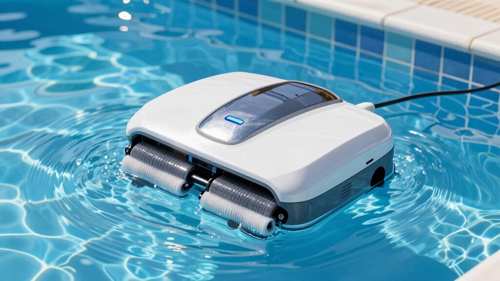 Battery life duration plays a key role in how effectively a robotic pool cleaner can maintain your above ground pool. A longer runtime means more extensive cleaning without needing to recharge, which is especially important for larger pools. I recommend a battery life of at least 90 minutes to ensure thorough coverage of pools up to 1076 sq. ft. or larger. Quick recharge times, around 2.5 hours, help minimize downtime and allow for frequent cleanings. If you want consistent performance across bigger or more complex pools, opt for models with at least 120 minutes of battery life. This extended runtime supports scheduled or weekly automated cleaning, reducing manual effort and keeping your pool consistently clean. Reliable battery life is essential for hassle-free maintenance.
