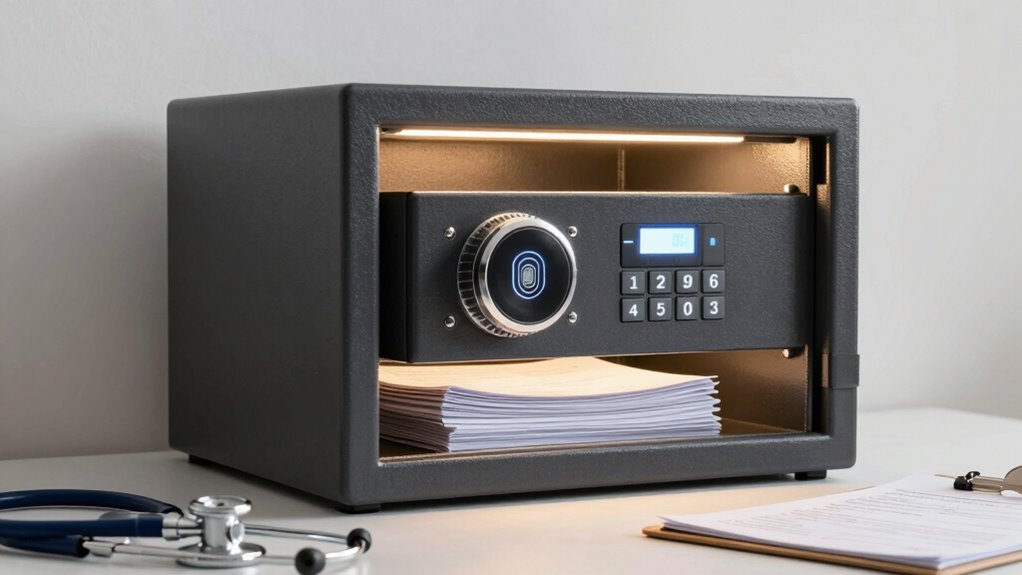 Choosing the right safe is like finding a sturdy anchor in a storm—your medical directives deserve that security. Whether it’s a trusted lockbox or a fireproof vault, each option safeguards your wishes, keeping them safe from the chaos outside. Remember, a good safe isn’t just a container; it’s a symbol of peace of mind, ensuring your voice remains heard and respected, no matter what storms may come.