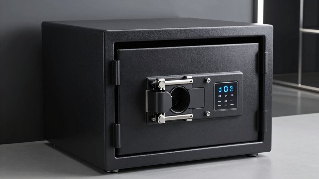 A robust locking mechanism is vital for maximizing a safe’s resistance to forced entry, especially when combined with reinforced hinges. The strength of the lock directly impacts the safe’s ability to withstand tampering and brute-force attacks. Systems like multiple deadbolts or electronic locks with reinforced components are more resistant to bypass attempts, making unauthorized access much harder. These advanced locks also benefit from layered security, combining physical and electronic elements to deter intruders effectively. Regular maintenance and testing are essential to ensure the locking system remains reliable over time. By choosing a safe with a strong, well-designed lock, you greatly enhance its overall security, providing peace of mind that your valuables are well protected against break-in attempts.