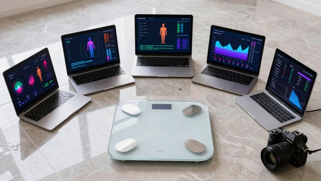 Smart scales guarantee accurate body composition measurements by using bioelectrical impedance analysis, sending a tiny, safe electrical current through your body. I’ve found that they factor in your height, age, and gender to improve precision. Regular calibration and consistent measurement conditions also help. I always stand still and use the same scale at the same time for the most reliable readings, making my progress tracking more accurate.